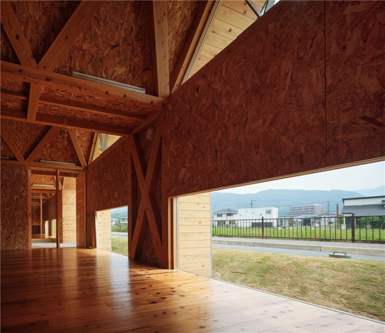 本案托儿所位于福冈市附近的太宰府市,为了容纳更多的孩子,不得不增加为两个班级。考虑到日本全国范围的出生率下降,不久的将来这里的孩子数量可能会减少,因此建筑师决定建造一座只有一室空间(9米跨度)的建筑,内部没有支柱,方便各种用途(游戏室等)的转换。木桁架梁在工厂安装,用拖车运送到施工现场。复杂的连接也是在工厂制作的,只有一个相对容易的连接在现场组装。这样的方式提高了施工精度,缩短了施工工期。