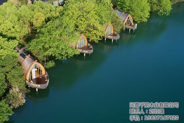 本项目是杭州富春开元芳草地乡村酒店的一组特色船屋客房。酒店坐落在建德富春江畔,梅城古镇东约五公里处,而船屋则“漂浮”在酒店30亩湖面西岸。