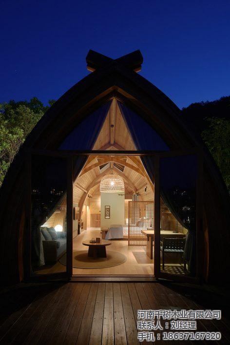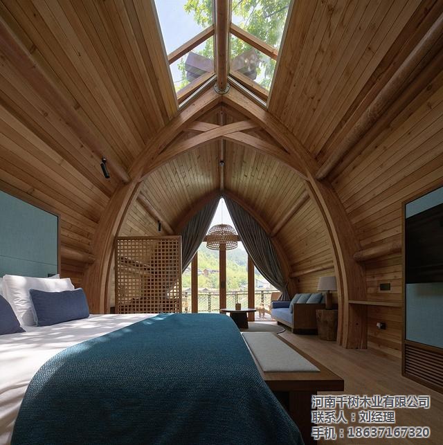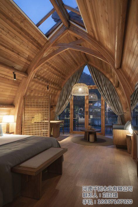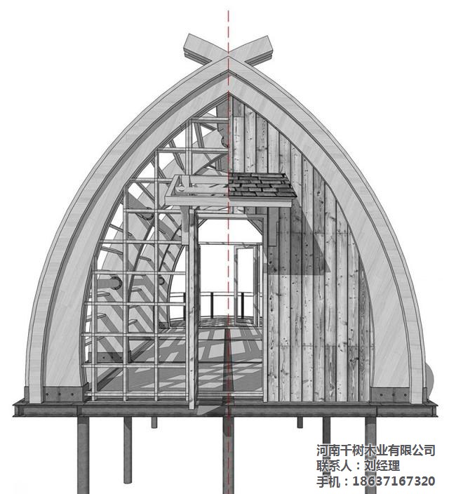 ▼建筑内外清晰可见拱梁和圆木构成的完整结构体系