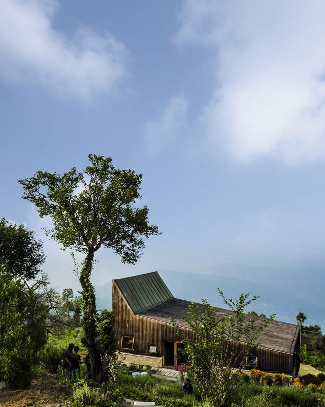 这座房子的设计考虑到了其周围喜马拉雅山脉白雪皑皑的自然景色,同时深深扎根于现有的未被破坏的梯田。这两个压倒性的景观使得建筑被放置在梯田的最低级,与周围的大环境相融合。