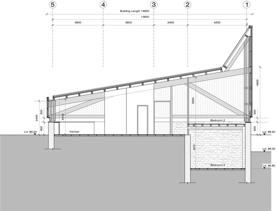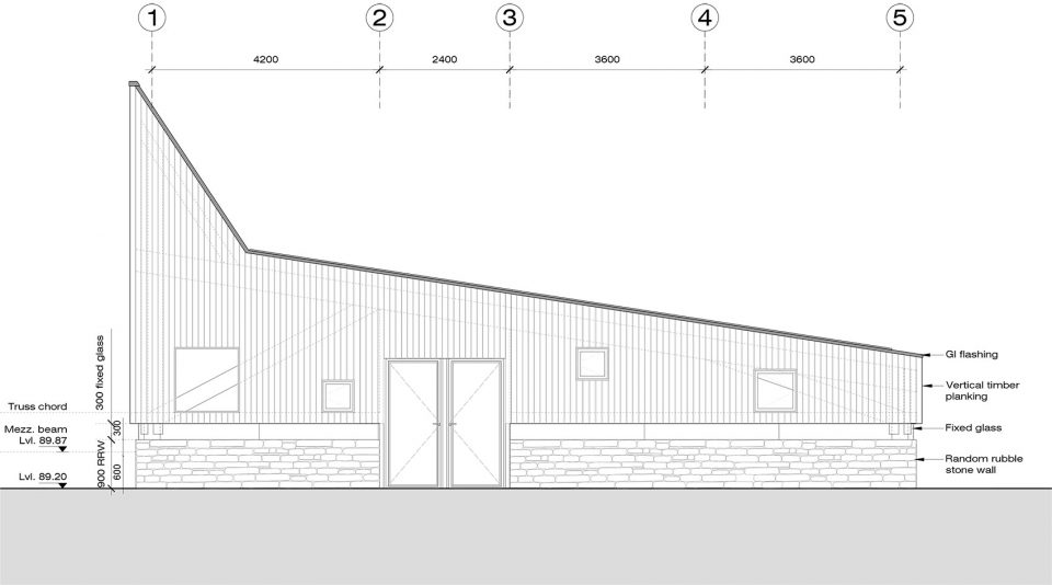 空间由三个不同的层次组成,每一个都大约占用14.5米x3.6 m的自然地形,外立面的连续横窗使得周围的果园和Almora镇的壮观景色一览无余。这个开窗像是一个裂缝,成为现场挖出的裸露的干石墙基地和当地名为thun木材包覆之间的过渡。