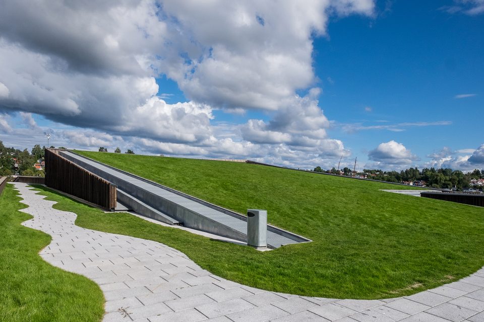 Holmen水上运动中心位于Holmen海滩,这里经过填海造陆,保护和巩固了场地的自然属性。整个场地被花园覆盖,为海滩带来非凡的美景。该项目旨在活化建筑的屋顶,使之成为海滩休闲区域的一部分。铺满植被的屋顶向南面倾斜,在Oslo fjord的群岛和礁石之上形成连续不断的景观。主入口、接待处、更衣室和游泳池皆位于建筑的主楼层,凌驾于向建筑方向倾斜的草坪之上。低处的楼层则容纳了体育馆、多功能厅、设备间以及办公设施等。