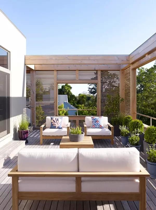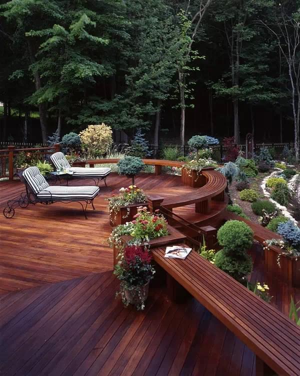 当然了,木平台甲板的设计风格任由设计师发挥,可以通过添加树木或绿廊,甲板的设计有很多种方式,下面这些案例你可以根据自己口味来重新设计,现在开始吧,一起看看!