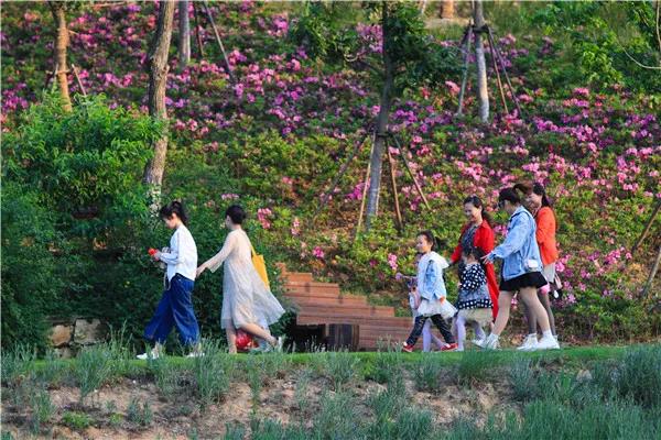 沿着水系走走步道,青草松软的香气,松鼠咯吱咯吱的声音,南归的燕儿衔泥筑巢的身影,这是人间四月的限定。