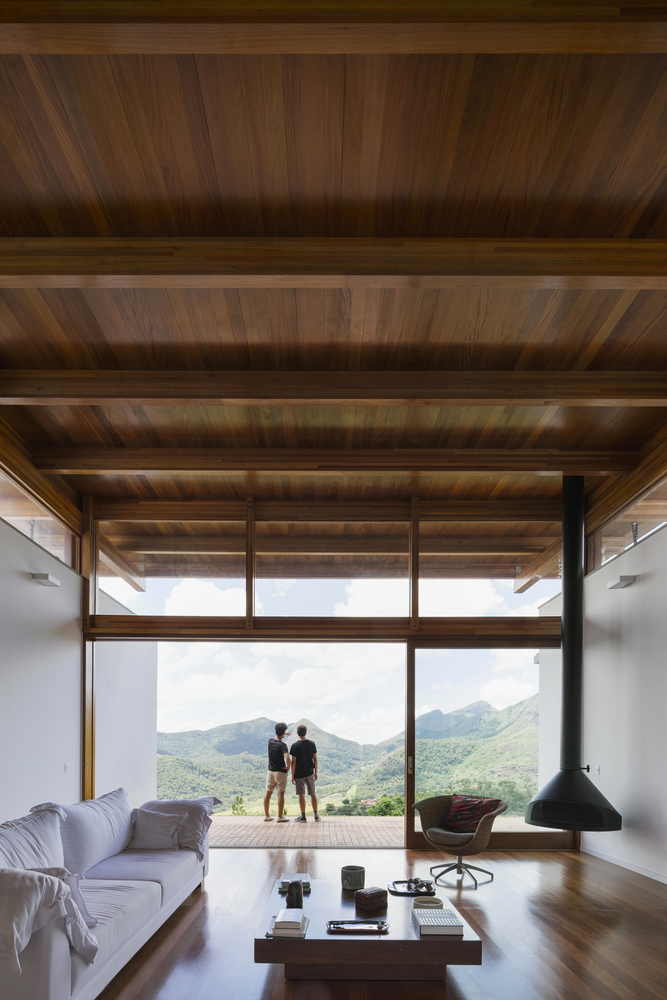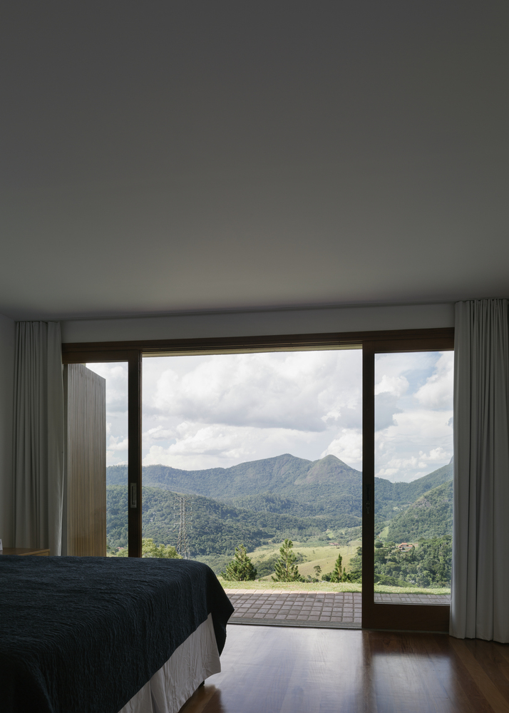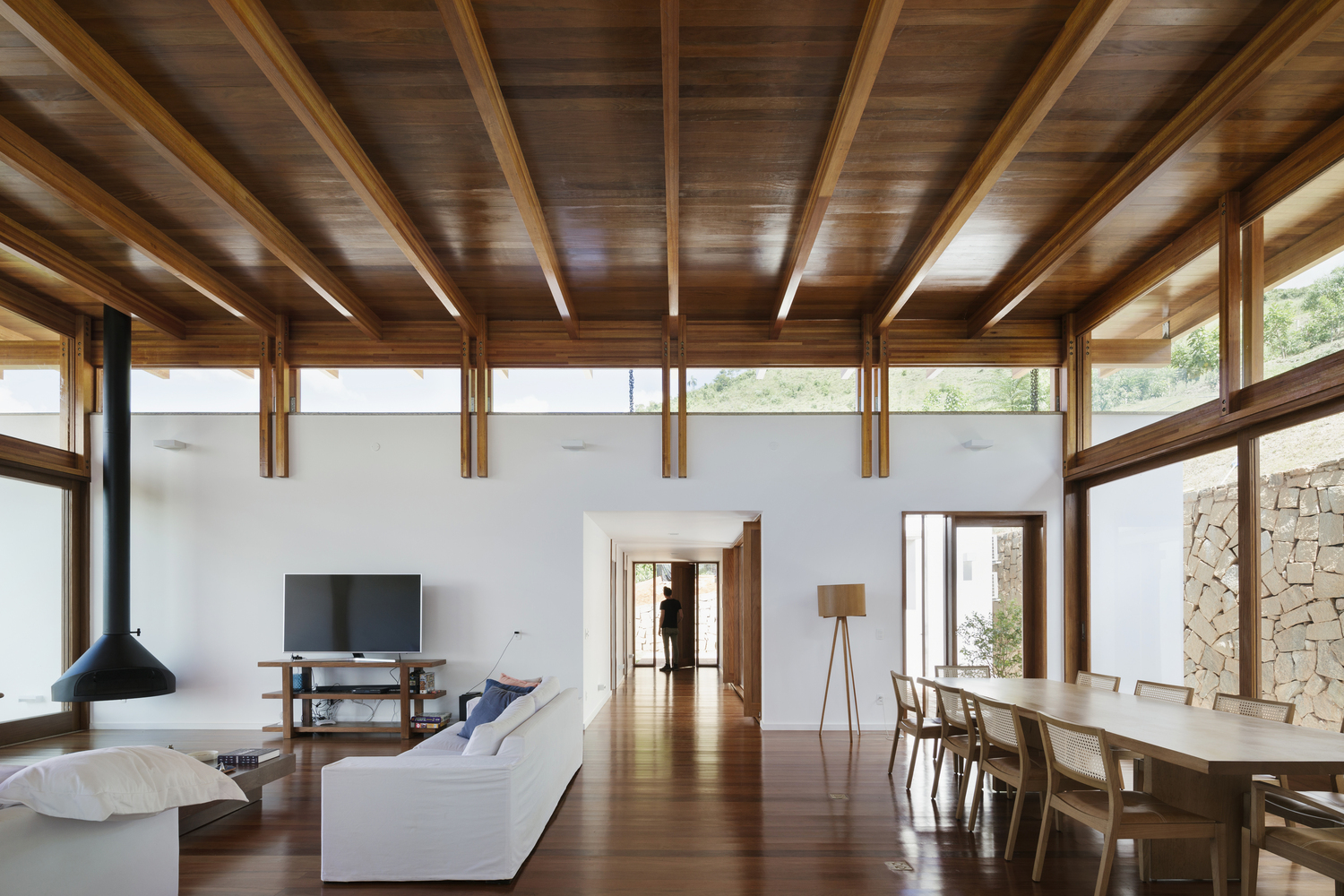 这些方案的连接形成结构轴心,创造了两条连接到外部的路径:纵向的轴可以变为绝美的外部景观,至于另一条横向的轴线,则可以明确表现出多种多样的交叉路口和配制出房屋的居住形式的环境。单层的构造再一次确保了环境之间连续性以及内外空间连续性的这一前提。通过扩展房屋在同一区域中的所有内在应用,探索不同的地块应用与体验得以成为可能。或是在内,或是在外。只有在游泳池的位置有一处楼层平面变化,其被两个卧室侧厅的厚片所整平。