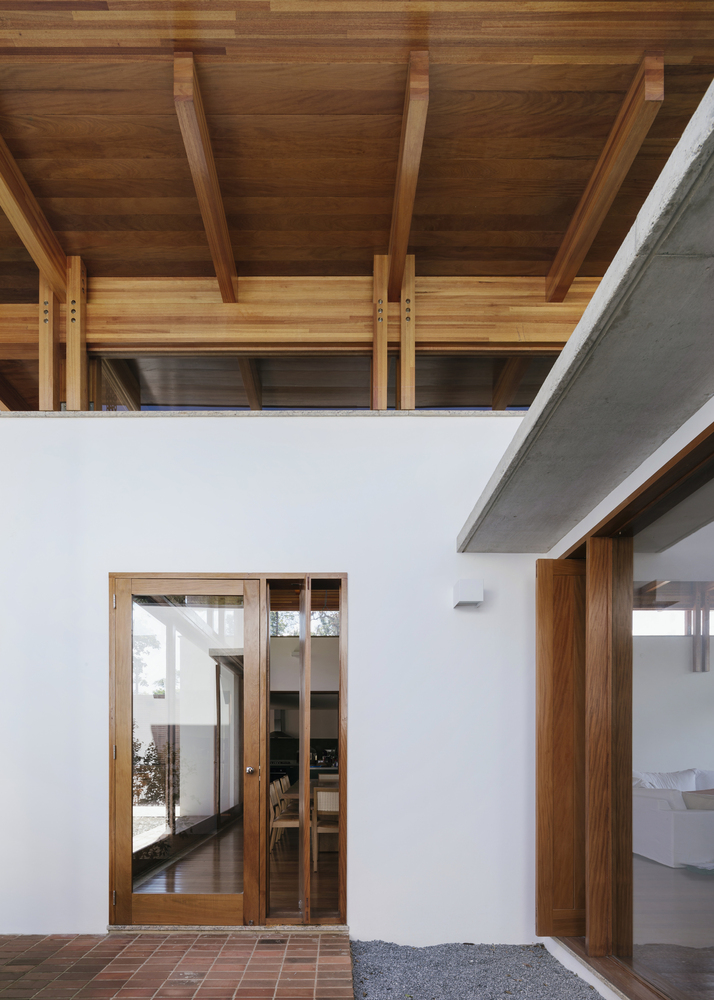在中庭中,外部与内部的联系逐渐增强,结构从其他房间生长出的遮盖构件亦如是。砖石平面中吸引人的木质细部,除了能够储存建造过程的记忆,反应混凝土柱的支撑杆以外,还可以将光线引入入口,以及增强对外部空间的感知。其中的空间,从最外部到最内部,采用了方形的外观。几乎全部的外部空间,几乎全部的内部空间。光线,空气,人群以及景观互相互动。