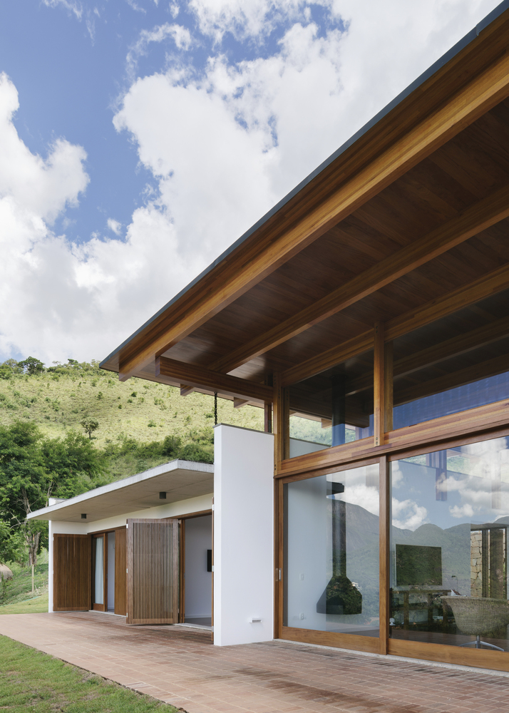被草坪覆盖后,它们形成了新的楼层,使得观景台的结构布置有个空中的穹顶做保护。所有与外部相连的空间和它们之间的联系被再次强化作为给每一处环境的空间结构塑形的元素的拓展。这种向外的空间延申在墙体的布局的连续性的中可以被看到,混凝土雨棚,门廊楼层——富有泥土气息的腔调暗示着该地区的泥土风情。这种刻意避免严格限定的风格追求创造一种外部壳体,强化它与周边景观的联系。
