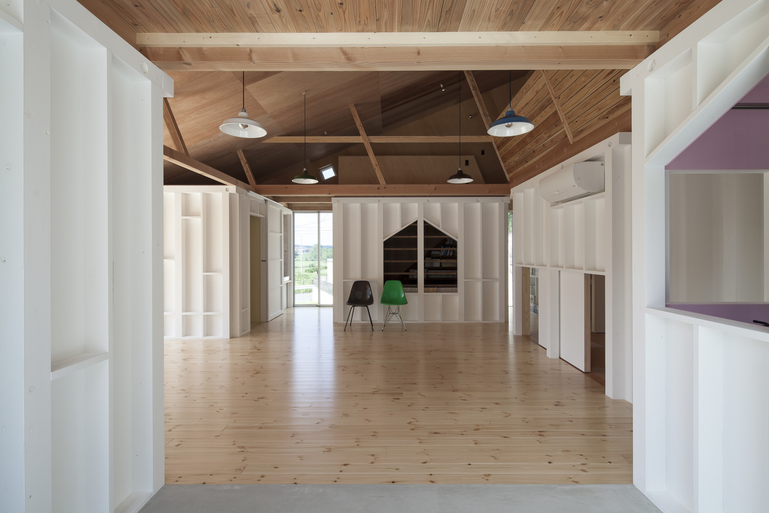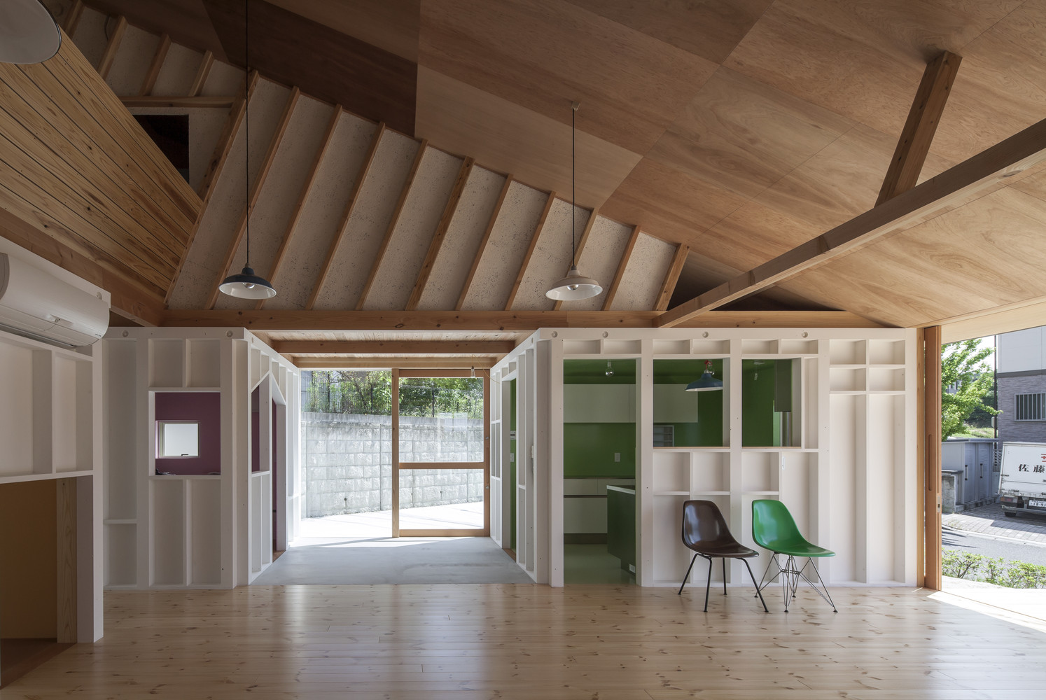 还有一件事我们仔细考虑过,他们在2011年的本州岛海域地震中失去了家园。他们说当看到房屋被无情地摧毁成混凝土块的那一刻,是永生难忘的。因此,我们提出了房屋内部不能有任何可能会引起他们伤心事的混凝土材料。
